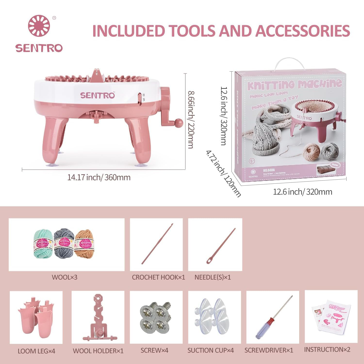 • SENTRO Knitting Machine 48 Needle-Pink Hot